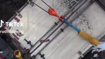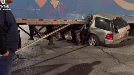 Guardrail skewers a big rig