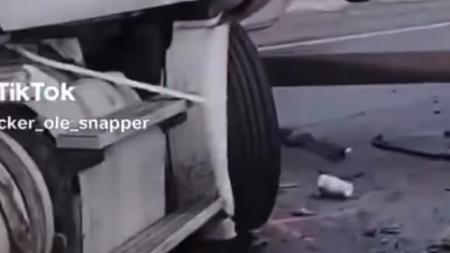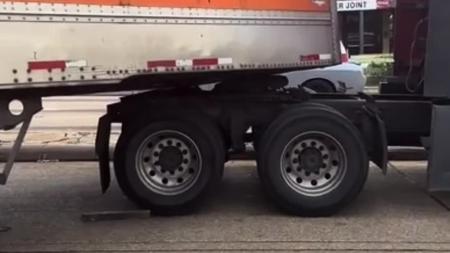 Tried to speed past a turning big rig